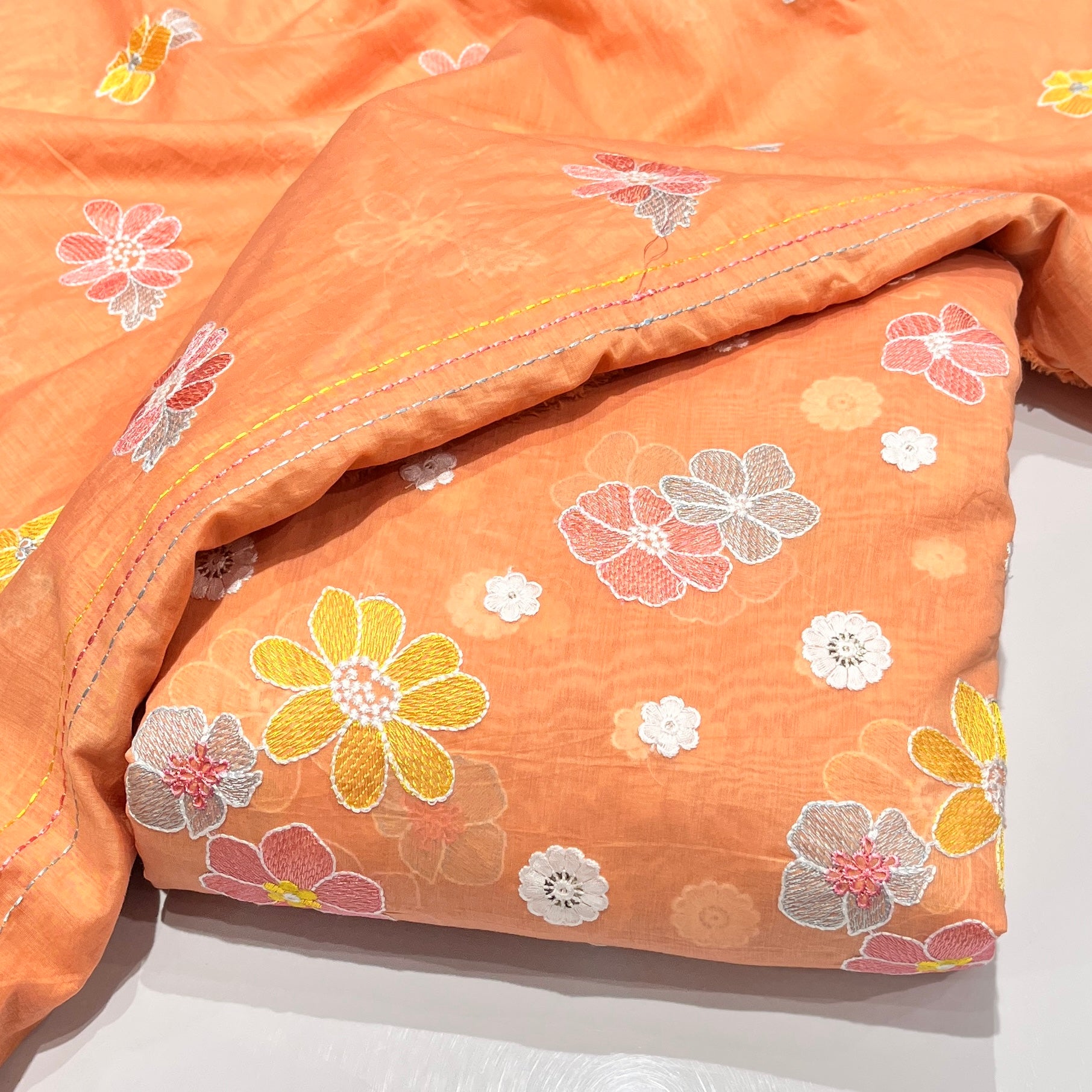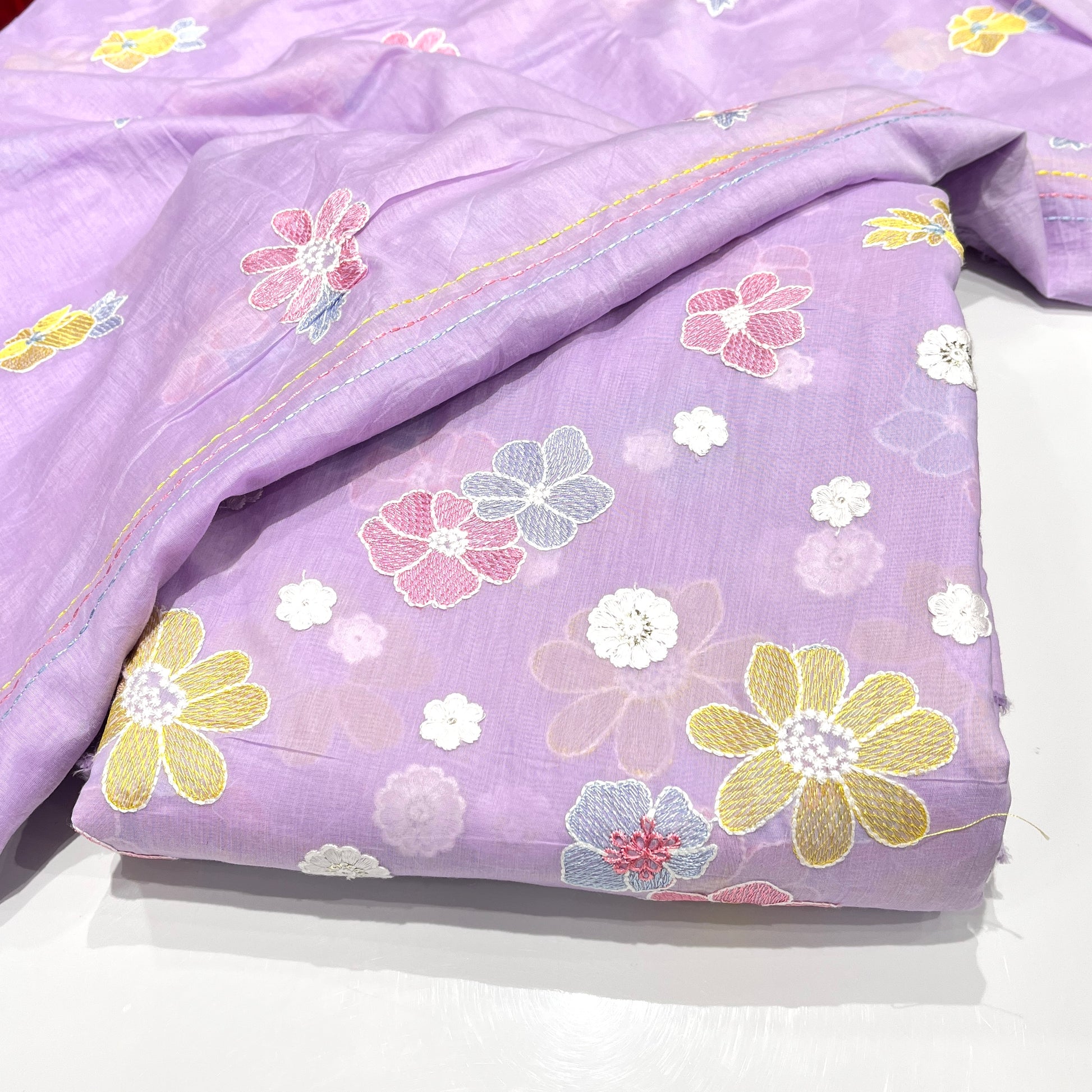 Pure Mul Muslin Multi Thread Embroidery (Top fabric + Dupatta fabric).