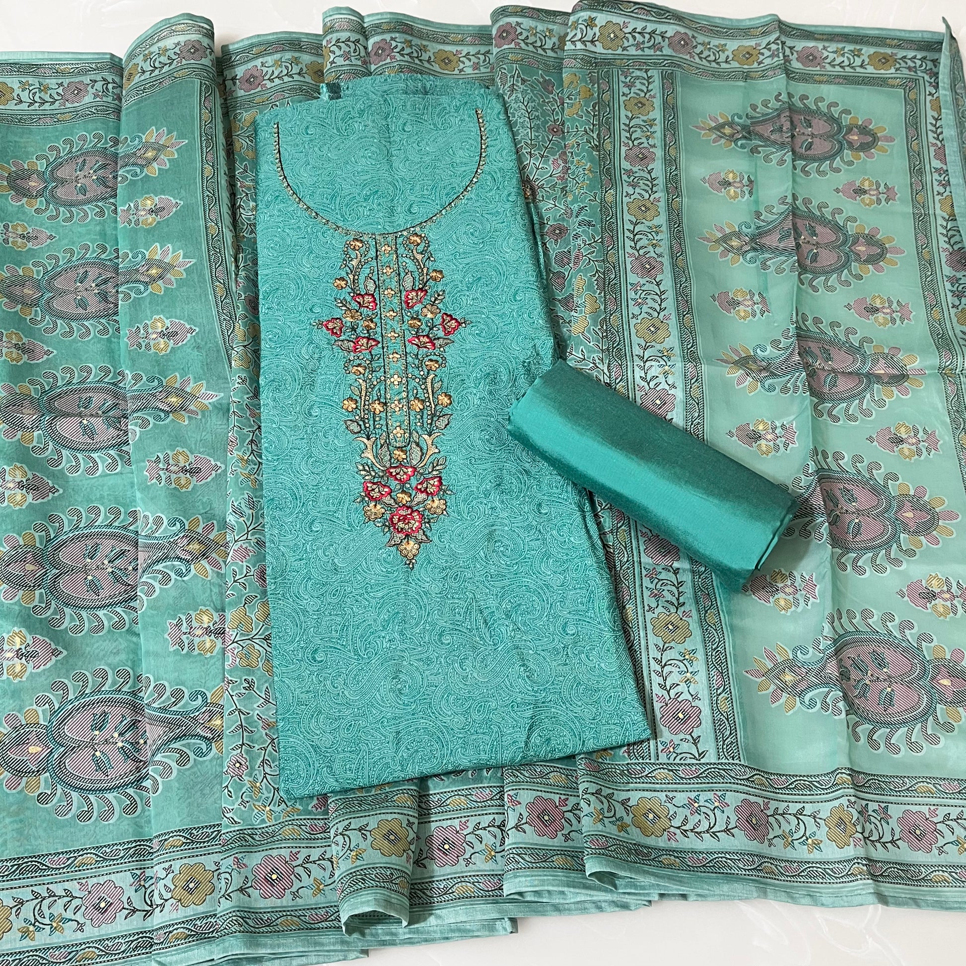 - Unstitched dress material.
