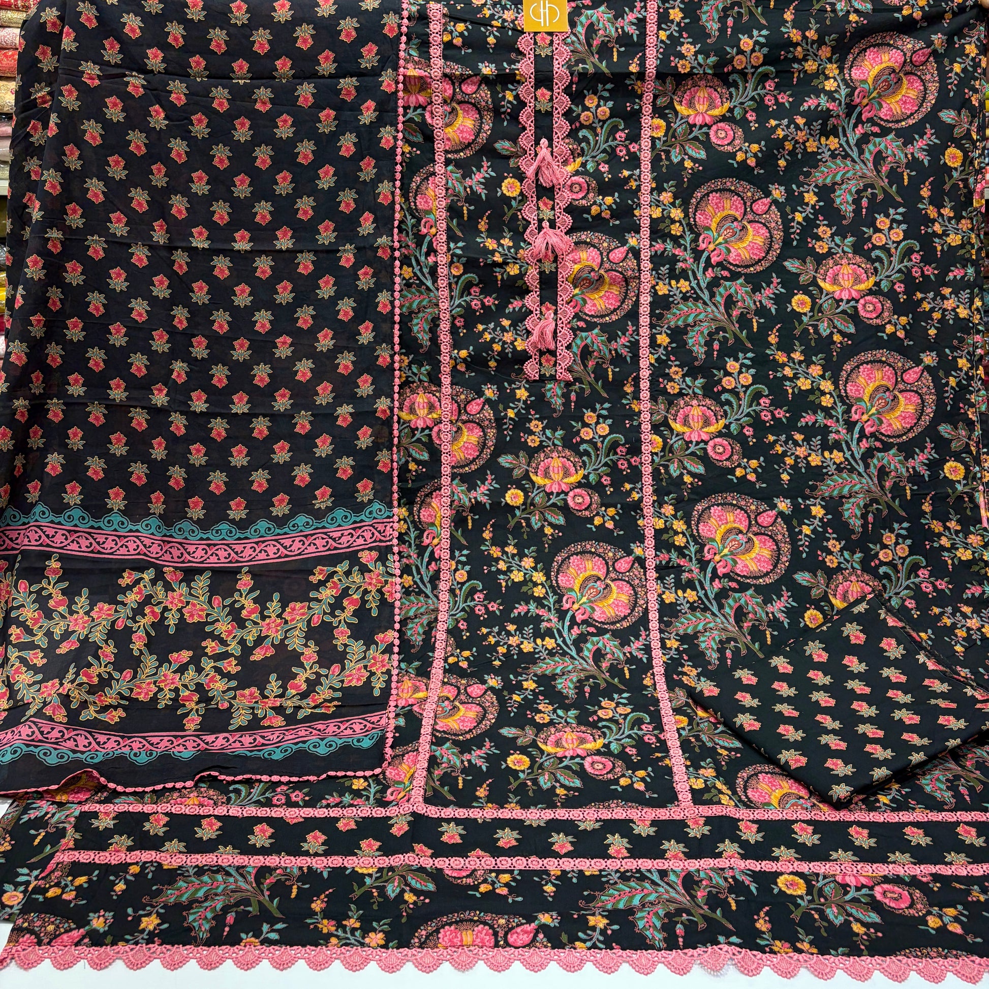 Pure Cotton 3pc Lace Suit (Unstitched)