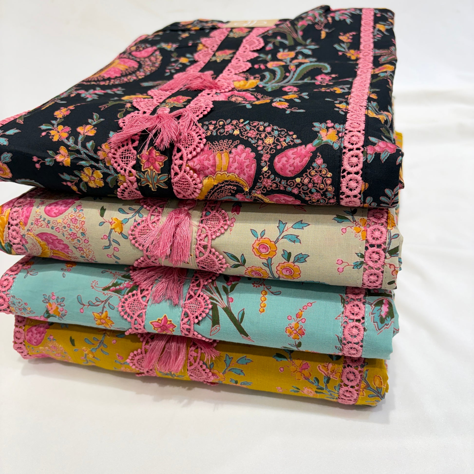 - Pure Cotton Print with Lace Work Embroidered Dupatta.