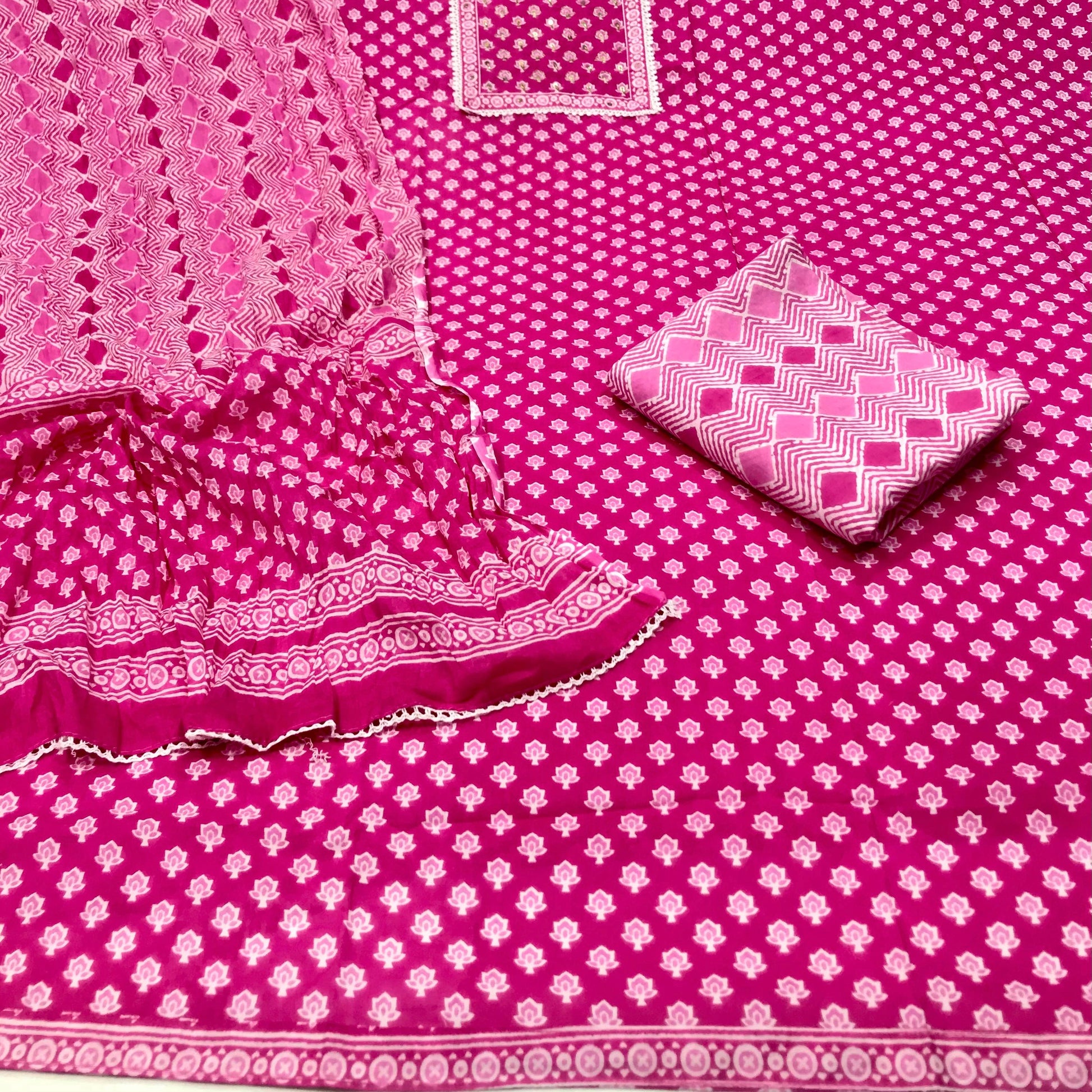 Pure Cotton 3pc Unstitched Suit (Shirt/Bottom/Dupatta)