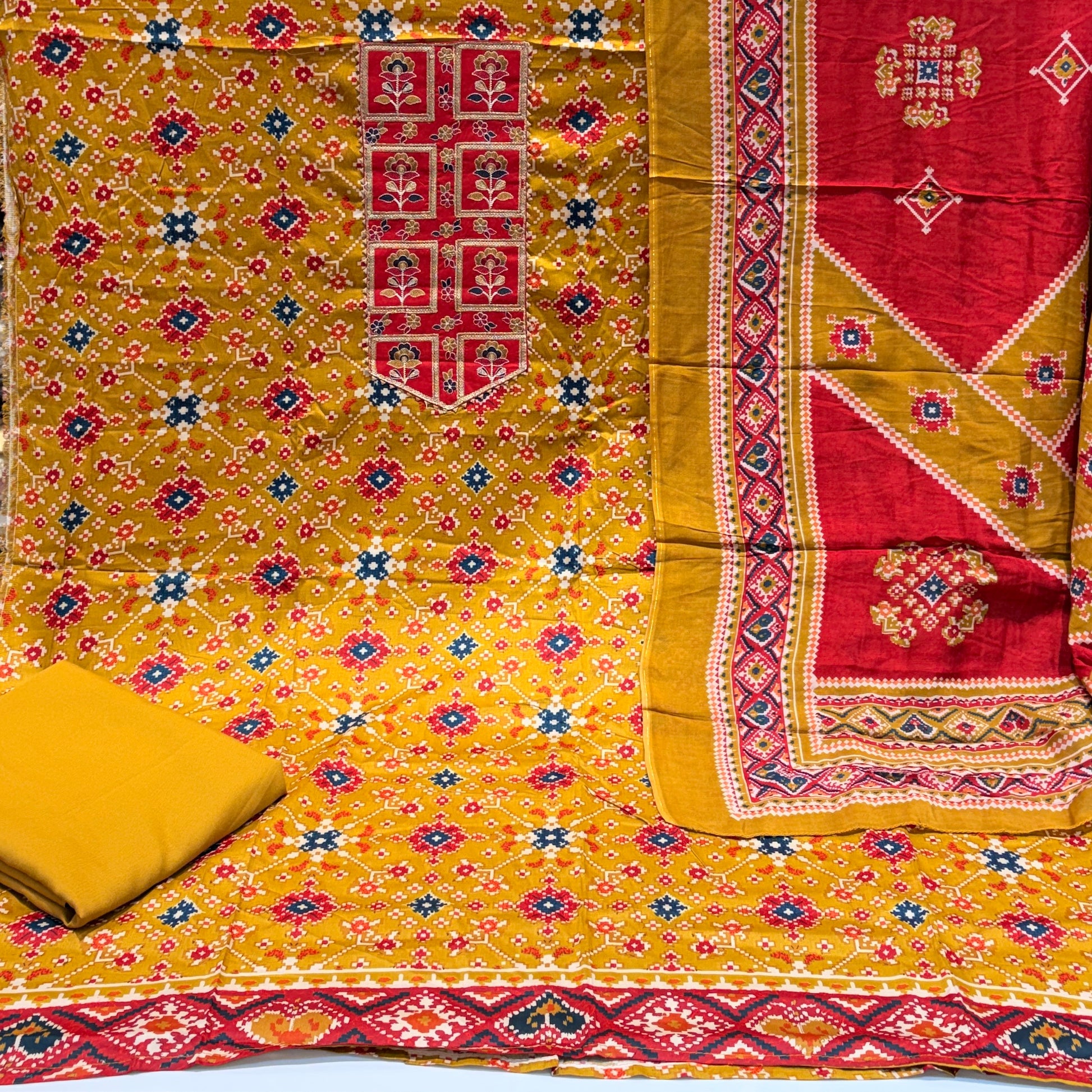 *PURE Glace COTTON Patola Print Unstitched Daily/Office Wear Suits*