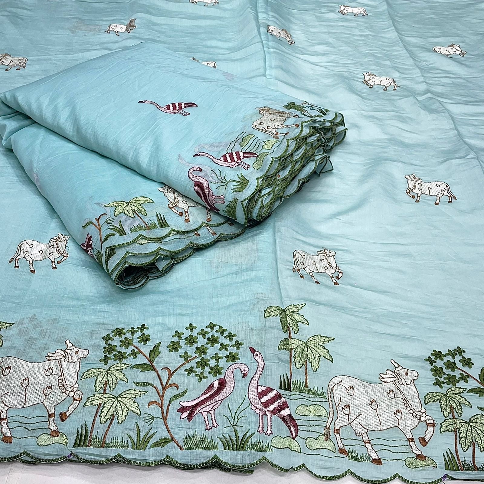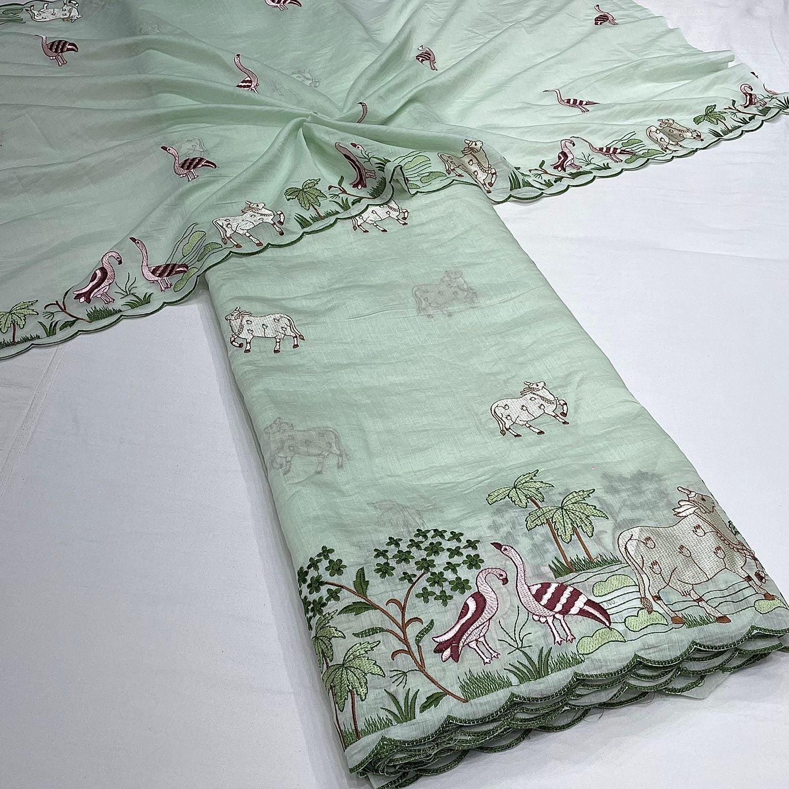 Pure Mul Embroidery 52” with Mul Embroidery 40” for Dupatta Combo